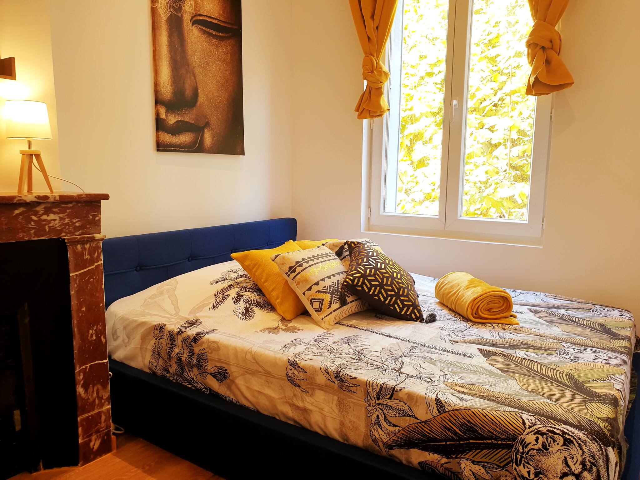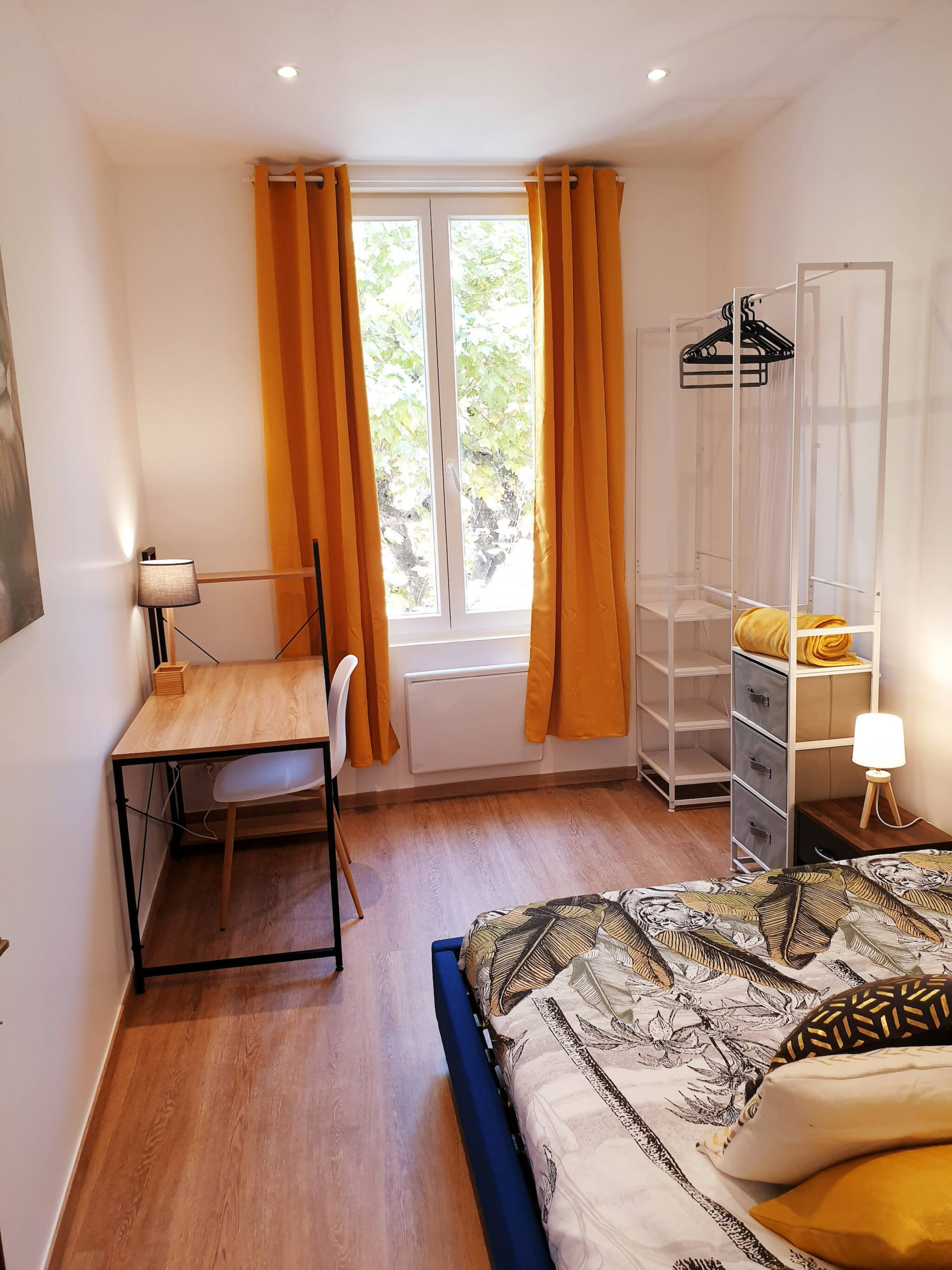 Deux grandes chambres avec bureaux et rangements. Jardin commun accessible, agréable et verdoyant.