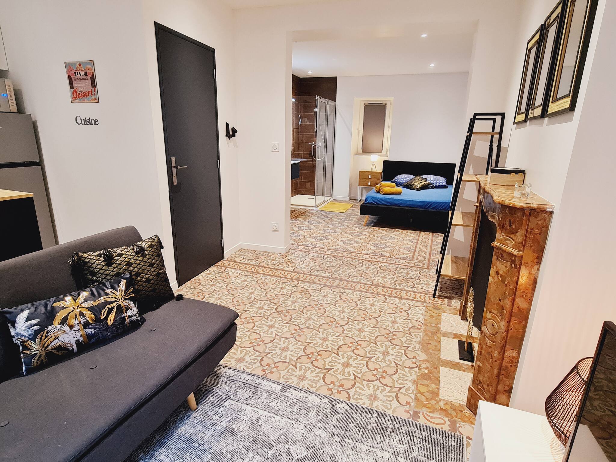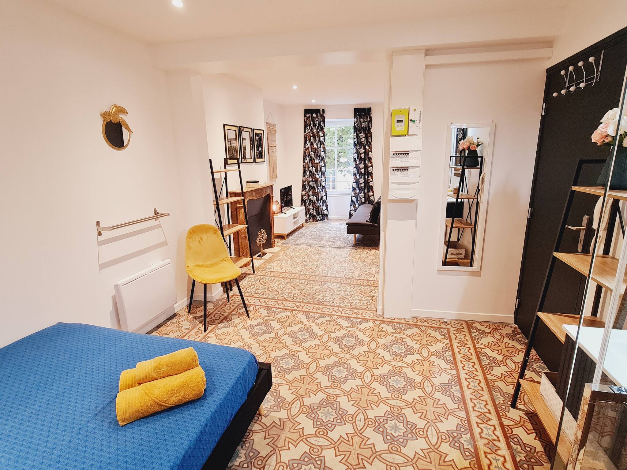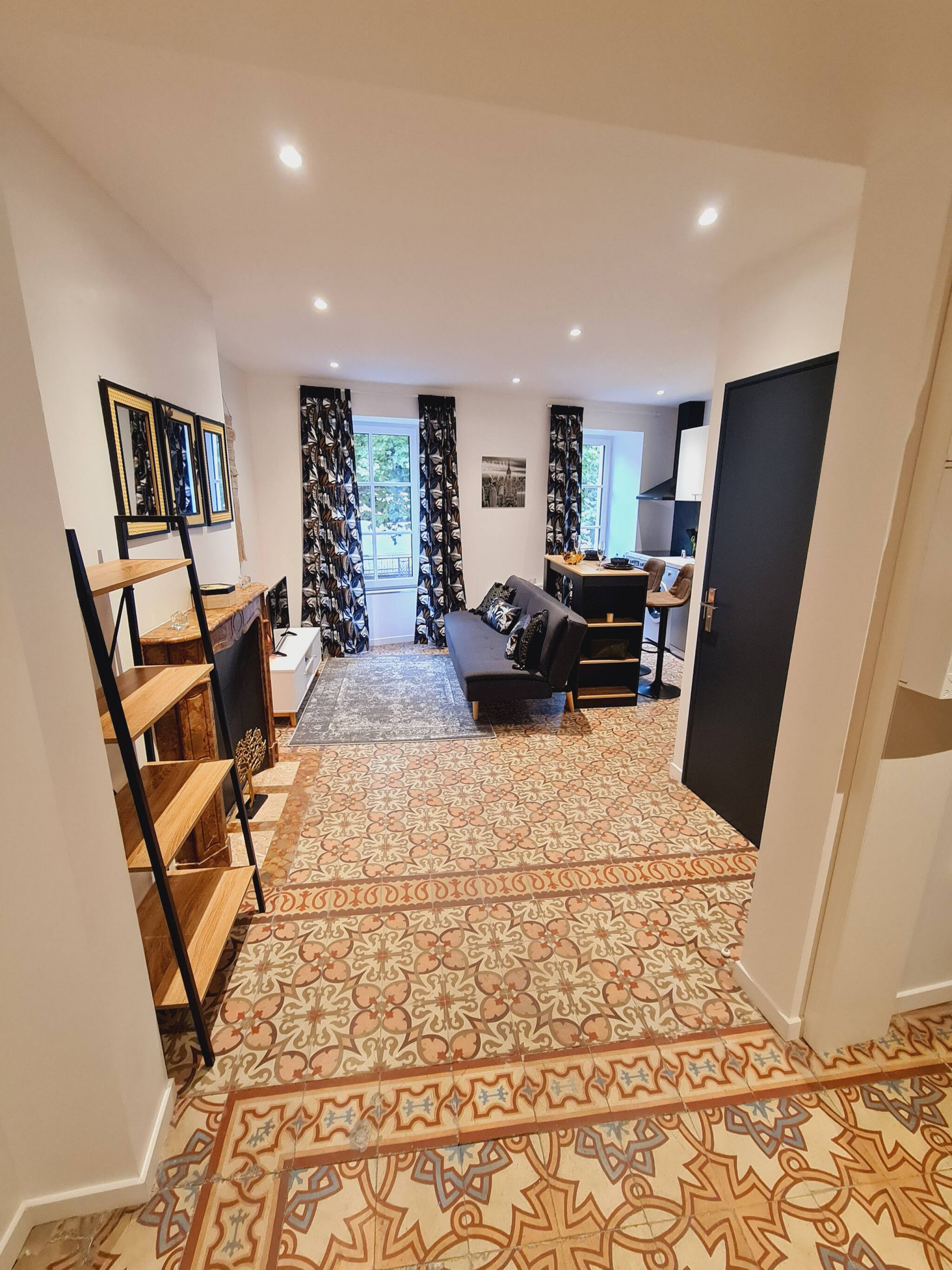 Appartement traversant & lumineux au cœur de Millau – Calme, charme & confortBienvenue dans notre "Havre de paix au coeur de Millau" ce superbe T2 bis de 43 m², situé au 3ᵉ étage sans ascenseur d’un immeuble ancien et authentique, niché au cœur du centre ville historique de Millau. Traversant, baigné de lumière naturelle, ce véritable havre de paix vous accueille dans un cadre chaleureux, élégant et parfaitement équipé pour un séjour aussi agréable que pratique.Un petit perron privatif, situé juste devant la porte d’entrée, offre un espace extérieur agréable, idéal pour prendre l’air, profiter des premiers rayons du soleil, et admirer la vue dégagée sur les toits de Millau.Un espace de vie lumineux et convivial :L’appartement s’ouvre sur un salon confortable, avec :Canapé, télévision 80 cmCoin repasCuisine américaine d’angle, entièrement équipée :Réfrigérateur, congélateur,Four, micro-ondes, plaques de cuissonGrille-pain, bouilloire, machine à café TassimoUstensiles, vaisselle, produits de première nécessitéSalle de bain indépendante, équipée d’une douche, lavabo, WC et machine à laver, pour un séjour en toute autonomieUn coin nuit paisible & studieux :Une chambre élégante, avec lit double (140x190), cheminée ancienne en marbre rouge, coin détente et vue imprenable sur la rue du marché, le boulevard Sadi Carnot et le beffroi historique de Millau.Un bureau indépendant, dans une pièce à part, idéale pour télétravailler, étudier ou simplement s’isoler pour un moment de concentration.Situation idéale :L’appartement est situé au cœur du boulevard Sadi Carnot, à :1 minute du centre commercial de la CapelleAu pied du marché du vendredi, entouré de commerces, restaurants, cafés – notamment le restaurant des HallesEn hyper centre historique, à proximité des ruelles pittoresques et de tous les services essentielsBon à savoir :Appartement traversant, très lumineux, sans vis-à-visSitué au 3ᵉ étage sans ascenseurPerron privatif, agréable pour prendre l’air et profiter de la vue sur les toitsPas de climatisation : l’appartement peut être chaud en été malgré une bonne ventilation naturelleStationnement public payant au pied de l’immeubleInterdiction de stationner le jeudi soir en raison de l’installation du marché hebdomadaire – bien vérifier la signalisationEn bas de l’immeuble, le salon de thé "Big Ben" propose petit-déjeuner et restauration (en supplément, réservation directe auprès de l’établissement)Réservez sans attendre ce charmant appartement traversant pour un séjour paisible, lumineux et confortable en plein centre de Millau !