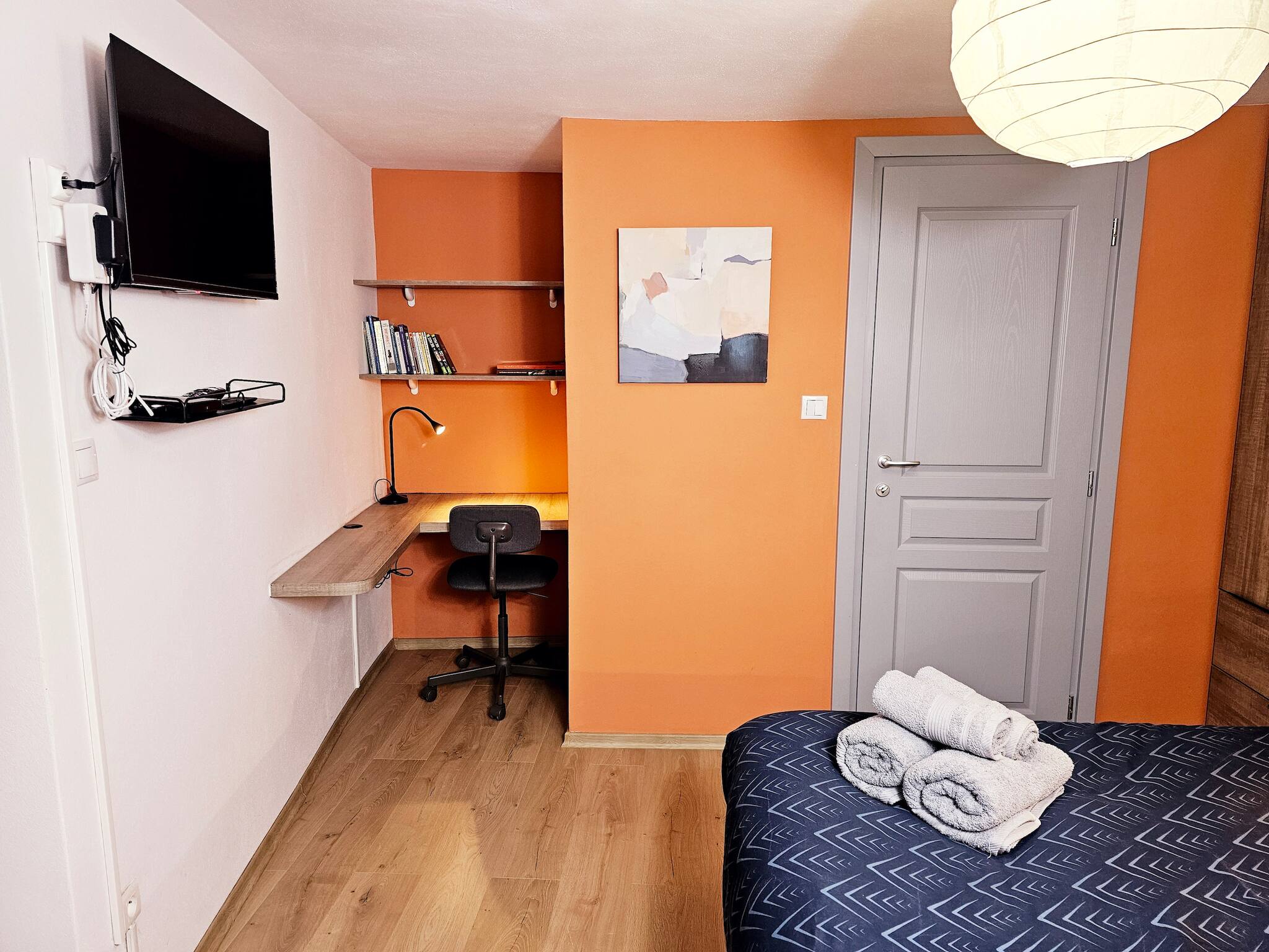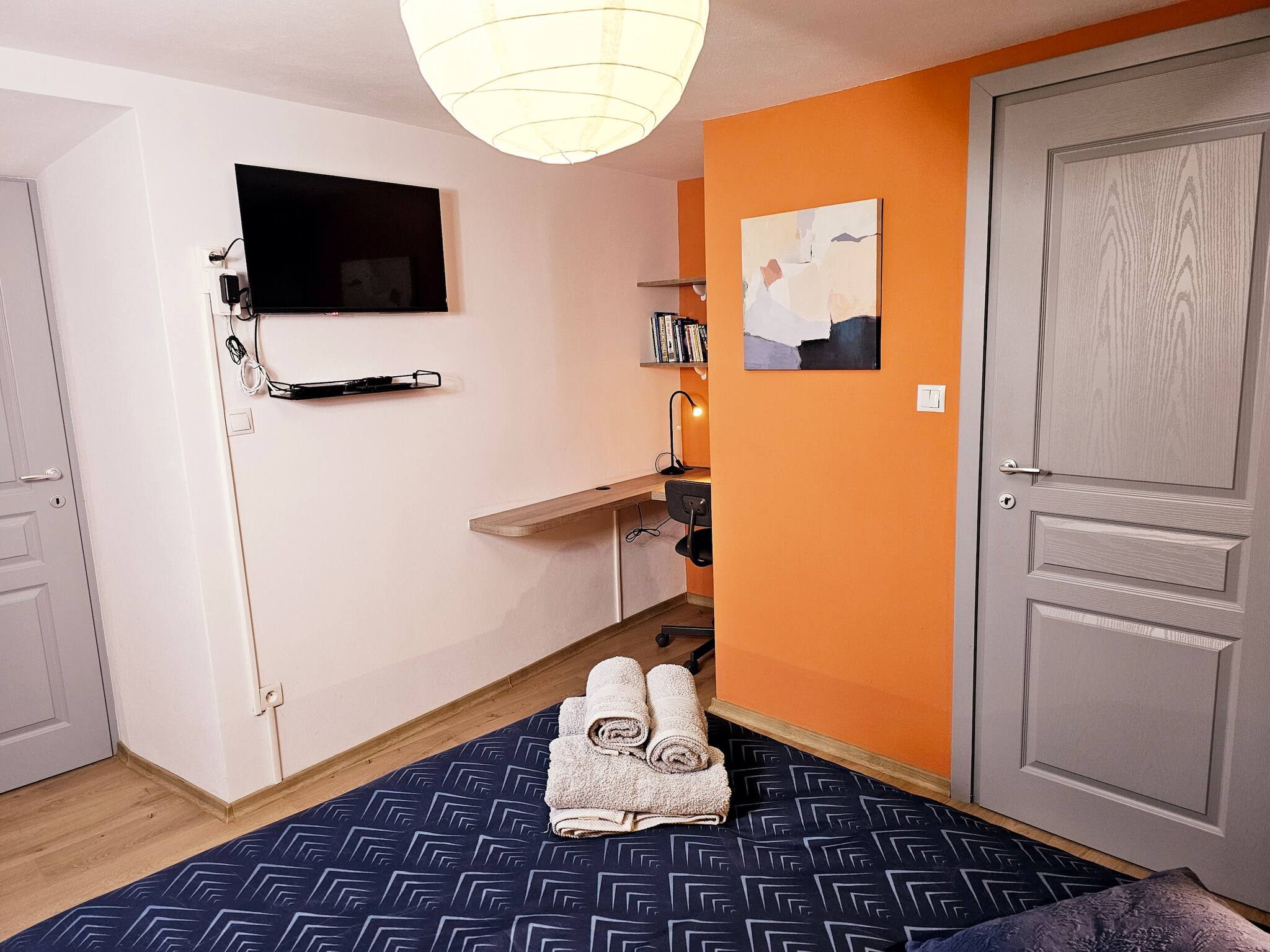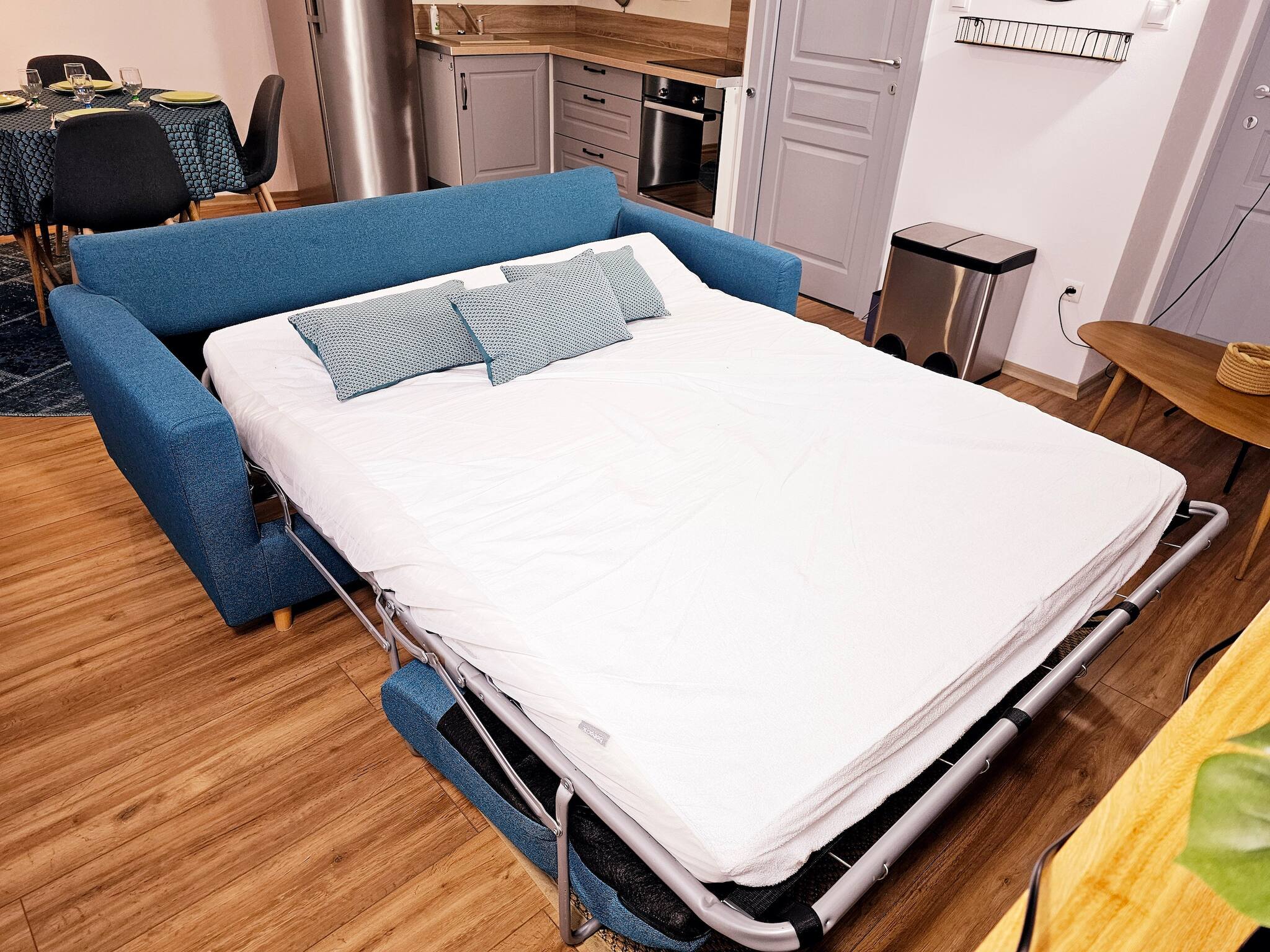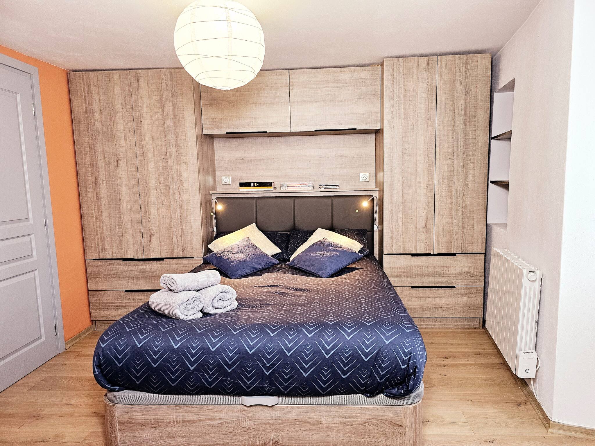 Élégant T2 "le cocon d'Emma" en cœur historique de Millau – Calme, confort & emplacement privilégiéBienvenue dans ce bel appartement T2 de 43 m², situé au 1er étage sans ascenseur d’un immeuble typique du centre ancien de Millau, entièrement rénové avec goût. Niché sur la place Emma Calvé, l’une des plus charmantes de la ville, ce logement vous offre un cadre de vie paisible, central et plein de caractère, à quelques pas des ruelles piétonnes, des restaurants, des cafés et des incontournables du patrimoine millavois.Un espace de vie chaleureux & fonctionnel :L’appartement dispose d’un séjour spacieux, pensé pour le confort :Un canapé convertible confortable (sur demande et supplément) face à une TV muraleUne cheminée décorative pour une ambiance chaleureuseUne table à manger conviviale pour 2 à 4 personnesUne cuisine ouverte entièrement équipée, avec :Réfrigérateur, congélateurFour, micro-ondes, plaques de cuissonGrille-pain, bouilloire, machine à café Vaisselle, ustensiles et produits de première nécessitéEspace nuit & salle d’eau attenante :La chambre, pratique et confortable, est équipée :D’un lit double 140x190 avec literie haut de gammeD’un bureau discret, parfait pour le télétravail, la lecture ou l’écritureD'un belle espace de rangement (placard muraux)D’un accès direct à une salle de bain privative, avec :Cabine de douche, lavabo, WCPratique & bien pensé : un espace buanderieUn espace buanderie indépendant, très pratique, complète le logement. Il comprend :Un second WCUn espace de rangement idéal pour stocker vos valises, effets personnels ou équipements durant le séjourUne situation exceptionnelle :Situé place Emma Calvé, au cœur du quartier historique de Millau, vous êtes :À deux pas du marché estival du vendredi et central à toute évènements locaux.Au pied des restaurants, bars, commerces, et ruelles touristiquesÀ proximité immédiate de la tour du Beffroi, des ruelles piétonnes, et des sites historiques de la villeInfos stationnement :Stationnement public payant au pied de l’immeuble.En cas de difficulté, un parking privée souterrain payant (heure ou forfait) est disponible face à l'immeuble.Réservez dès maintenant ce charmant appartement en plein cœur de Millau pour un séjour authentique, confortable et parfaitement situé !
