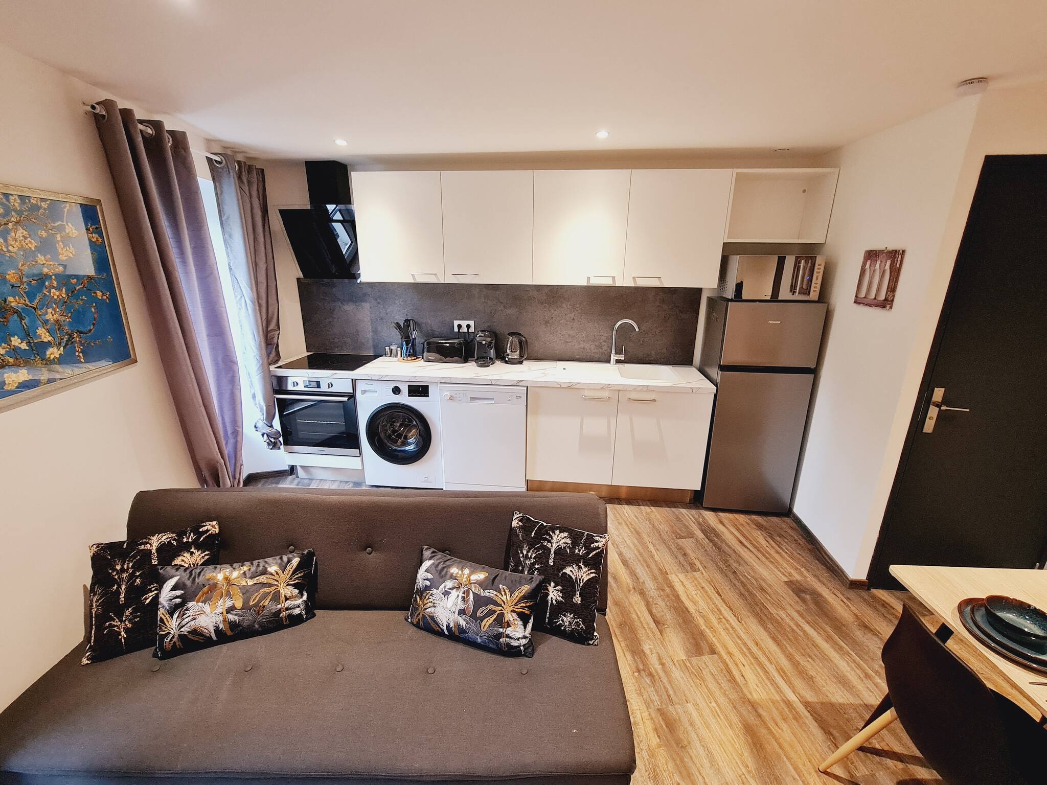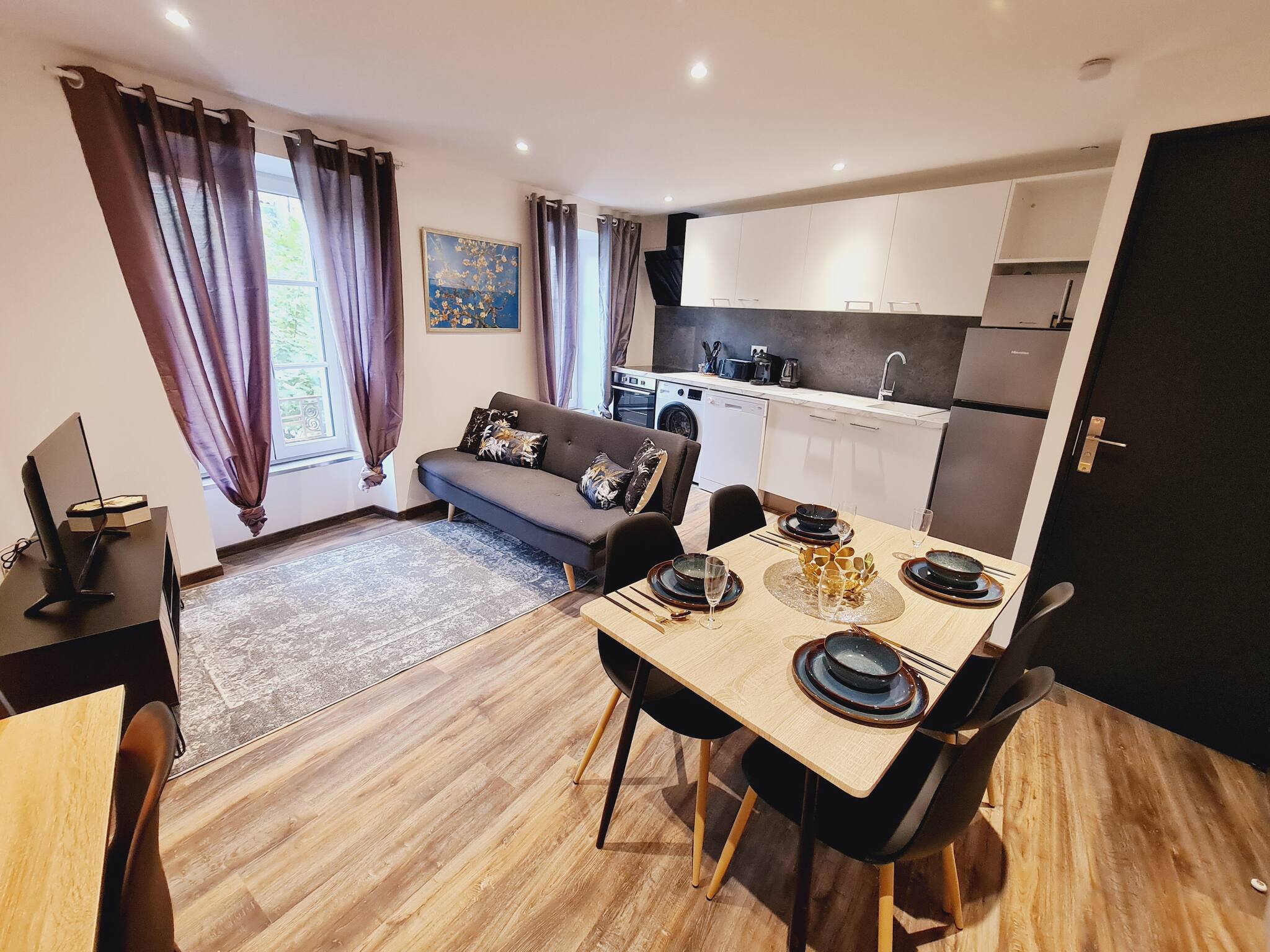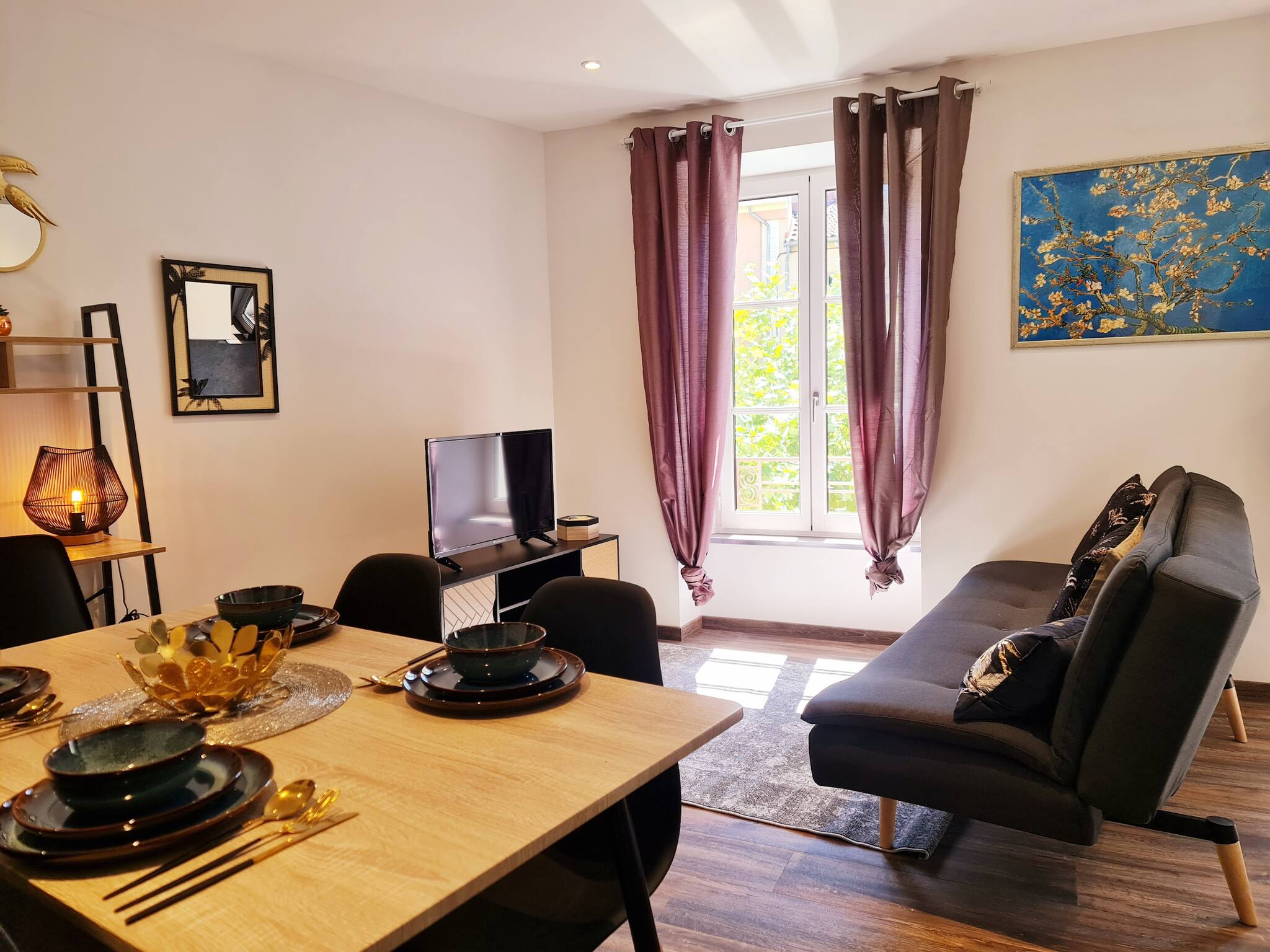 Le nid de Millau – Mignon T2 avec vue dégagée et verdoyante au cœur de la villeBienvenue dans notre "Nid de Millau", un appartement cosy avec beaucoup de charme de 30m2, niché au 3ᵉ étage (sans ascenseur) d’un immeuble typique millavois, à deux pas du rond-point du Mandarous – véritable cœur battant de la ville. Situé avenue de la République, l’emplacement est tout simplement idéal : commerces, restaurants, marché, centre historique, rues piétonnes et transports en commun sont à portée de main. Tout commence ici.Un T2 lumineux, fonctionnel et bien pensé – parfait pour un séjour confortable et autonomeSalon convivial et lumineuxUn espace de vie accueillant et chaleureux, parfait pour se détendre ou travailler :Canapé confortable face à une TV 80 cm et un coin bureau.Coin repas agréable pour 2 à 4 personnesBureau pour télétravailler dans de bonnes conditionsCuisine ouverte entièrement équipée :Réfrigérateur, congélateur, four chaleur tournante, micro-ondes, plaques vitrocéramiques, lave-vaisselle, lave-linge, grille-pain, bouilloire, machine à café Tassimo, ustensiles, vaisselle et produits de première nécessitéUne chambre type suite hôtelièreLa chambre, isolée du salon pour plus d’intimité, propose :Un lit double (140x190)Une penderieSalle d’eau attenante et ouverte sur la chambre, moderne et élégante avec douche extra-plate (110x90) et lavabo suspenduUn WC suspendu séparé pour encore plus de confortServices & commodités supplémentairesWi-Fi haut débitAu rez-de-chaussée de l’immeuble :Restauration possible sur commande (petit-déjeuner en supplément), salon de thé sur place pour un moment gourmand et détenteEmplacement stratégiqueÀ 5 min du centre commercial de La CapelleÀ deux pas des commerces, bars, restaurants, marchés locauxEn plein centre ville et bordure du centre historique et touristiqueArrêts de bus et taxis à proximité immédiateStationnementStationnement public payant au pied de l'immeubleGrand Parking gratuit de la Grave (900 m 15 mn a pied) ou encore stationnement gratuit au par ce la Victoire (850m 12 mn a pied)Réservez dès maintenant ce superbe T2, au dernier étage, calme, baigné de lumière, pour vivre Millau pleinement, entre confort, autonomie et immersion locale.