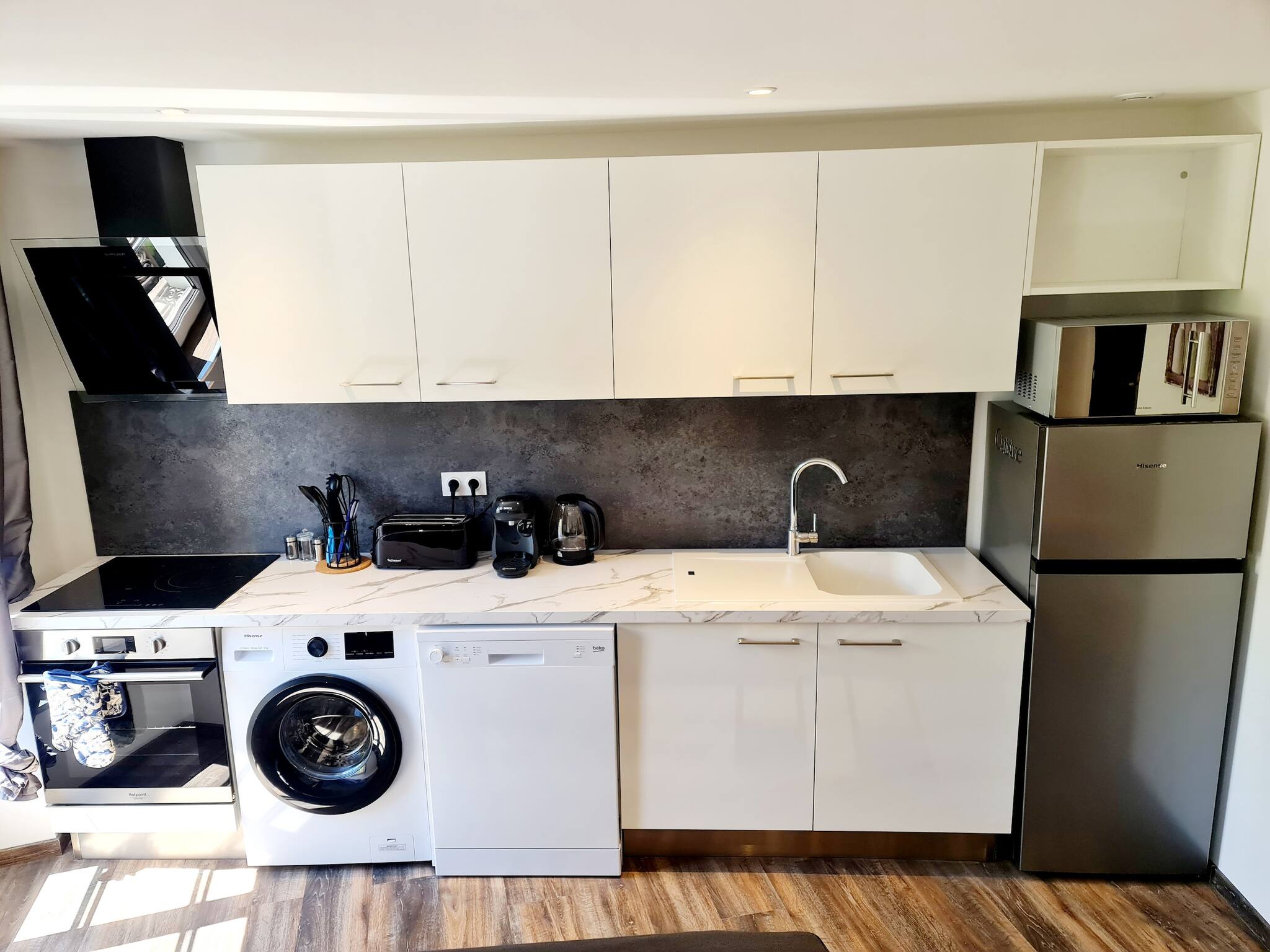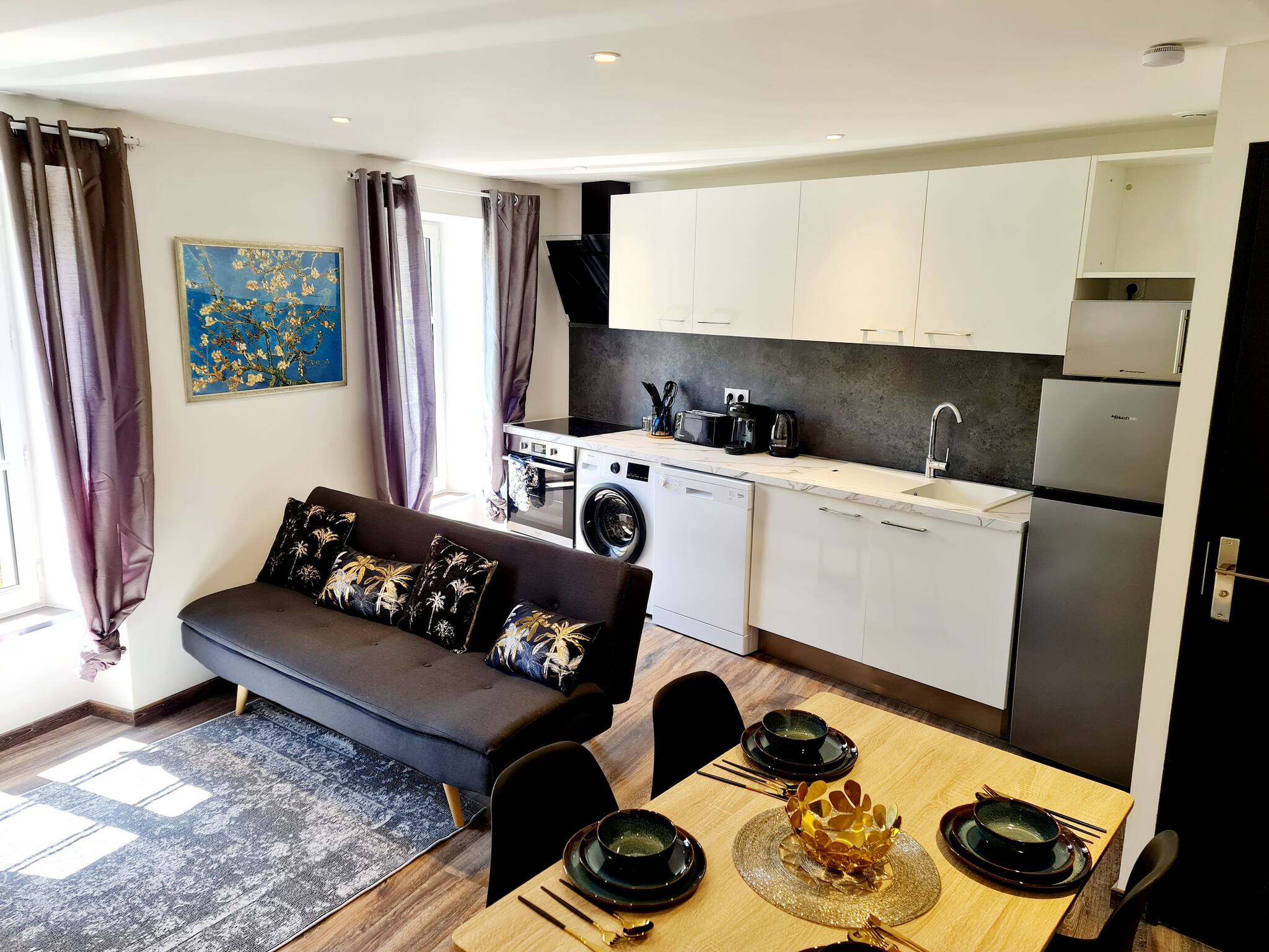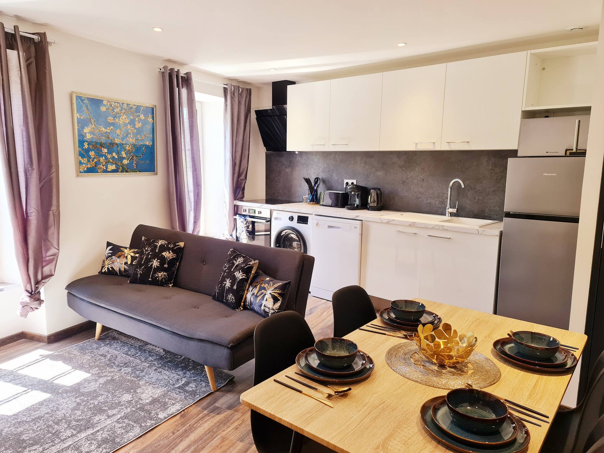 Le nid de Millau – Mignon T2 avec vue dégagée et verdoyante au cœur de la villeBienvenue dans notre "Nid de Millau", un appartement cosy avec beaucoup de charme de 30m2, niché au 3ᵉ étage (sans ascenseur) d’un immeuble typique millavois, à deux pas du rond-point du Mandarous – véritable cœur battant de la ville. Situé avenue de la République, l’emplacement est tout simplement idéal : commerces, restaurants, marché, centre historique, rues piétonnes et transports en commun sont à portée de main. Tout commence ici.Un T2 lumineux, fonctionnel et bien pensé – parfait pour un séjour confortable et autonomeSalon convivial et lumineuxUn espace de vie accueillant et chaleureux, parfait pour se détendre ou travailler :Canapé confortable face à une TV 80 cm et un coin bureau.Coin repas agréable pour 2 à 4 personnesBureau pour télétravailler dans de bonnes conditionsCuisine ouverte entièrement équipée :Réfrigérateur, congélateur, four chaleur tournante, micro-ondes, plaques vitrocéramiques, lave-vaisselle, lave-linge, grille-pain, bouilloire, machine à café Tassimo, ustensiles, vaisselle et produits de première nécessitéUne chambre type suite hôtelièreLa chambre, isolée du salon pour plus d’intimité, propose :Un lit double (140x190)Une penderieSalle d’eau attenante et ouverte sur la chambre, moderne et élégante avec douche extra-plate (110x90) et lavabo suspenduUn WC suspendu séparé pour encore plus de confortServices & commodités supplémentairesWi-Fi haut débitAu rez-de-chaussée de l’immeuble :Restauration possible sur commande (petit-déjeuner en supplément), salon de thé sur place pour un moment gourmand et détenteEmplacement stratégiqueÀ 5 min du centre commercial de La CapelleÀ deux pas des commerces, bars, restaurants, marchés locauxEn plein centre ville et bordure du centre historique et touristiqueArrêts de bus et taxis à proximité immédiateStationnementStationnement public payant au pied de l'immeubleGrand Parking gratuit de la Grave (900 m 15 mn a pied) ou encore stationnement gratuit au par ce la Victoire (850m 12 mn a pied)Réservez dès maintenant ce superbe T2, au dernier étage, calme, baigné de lumière, pour vivre Millau pleinement, entre confort, autonomie et immersion locale.