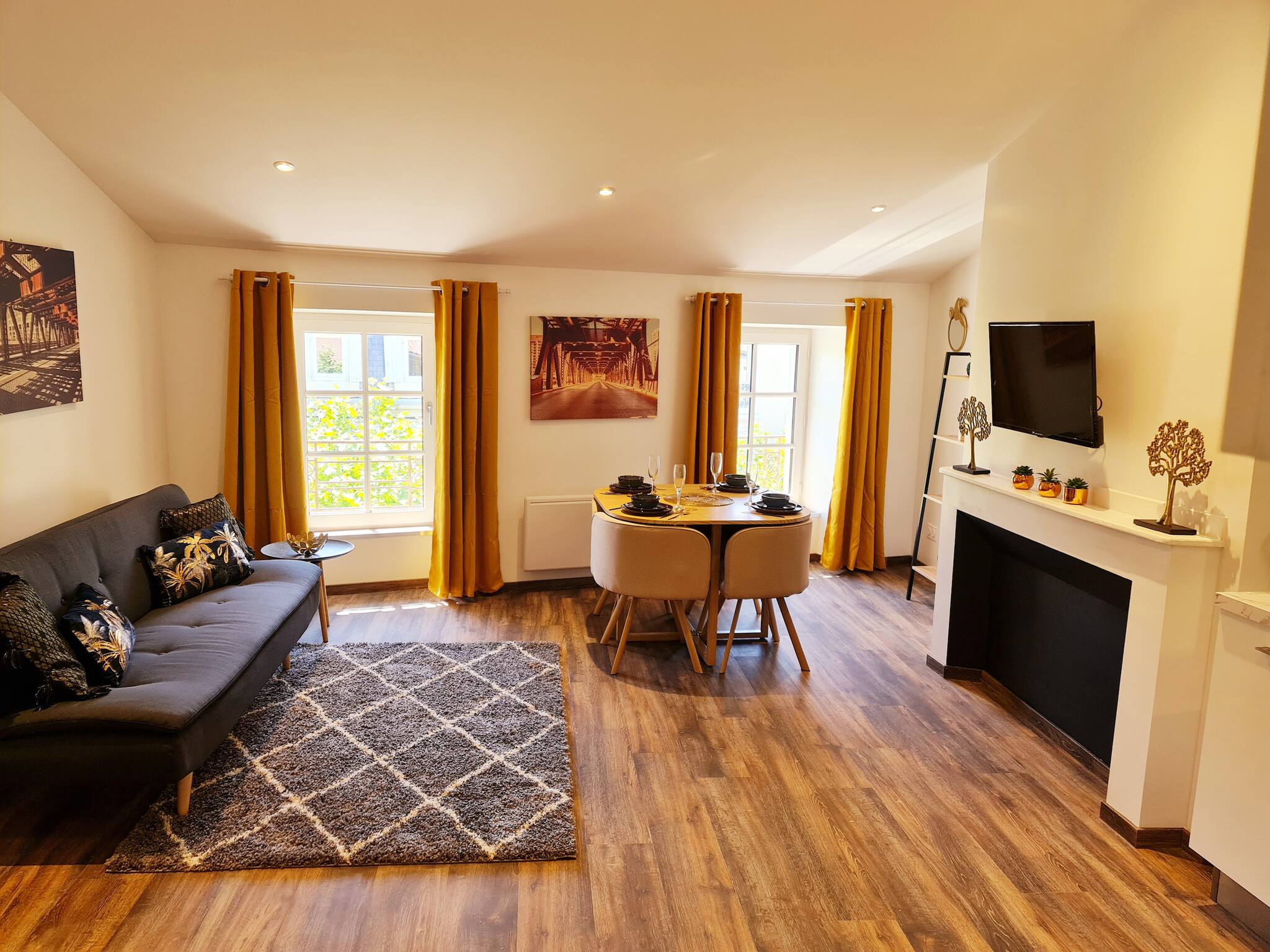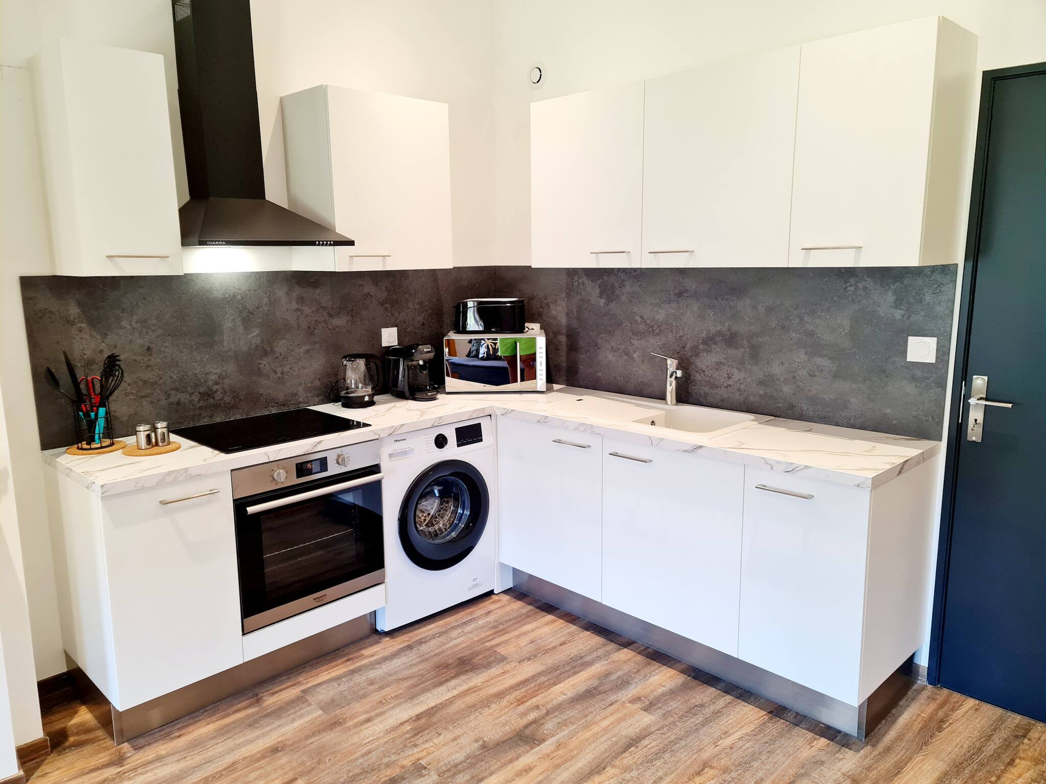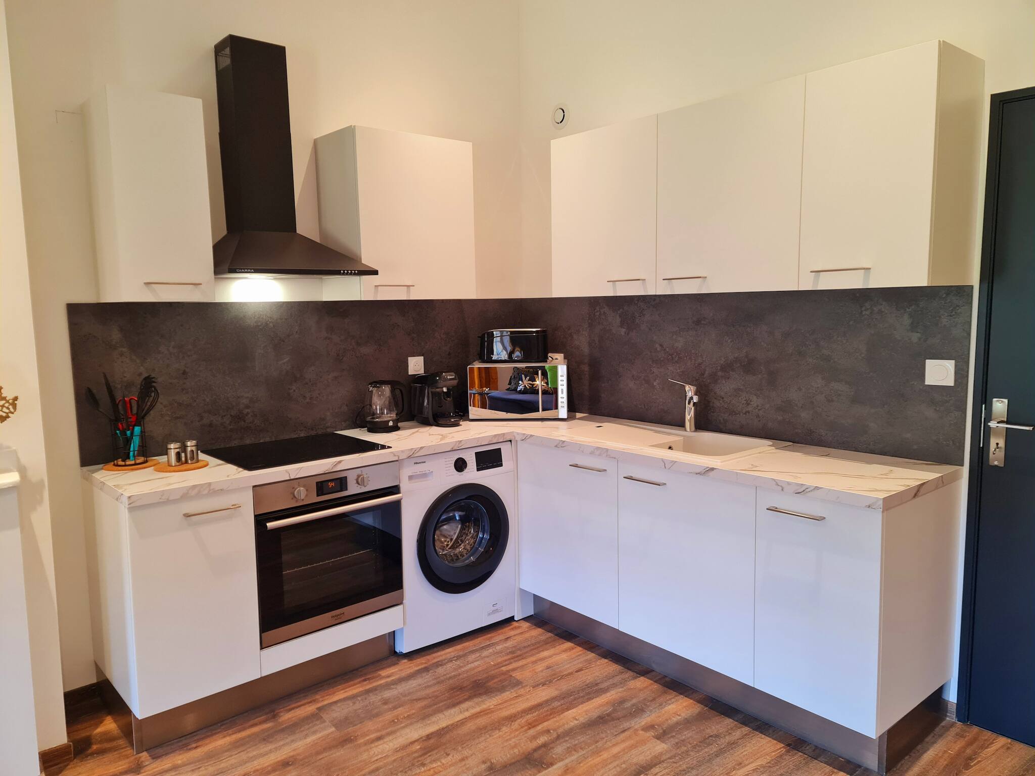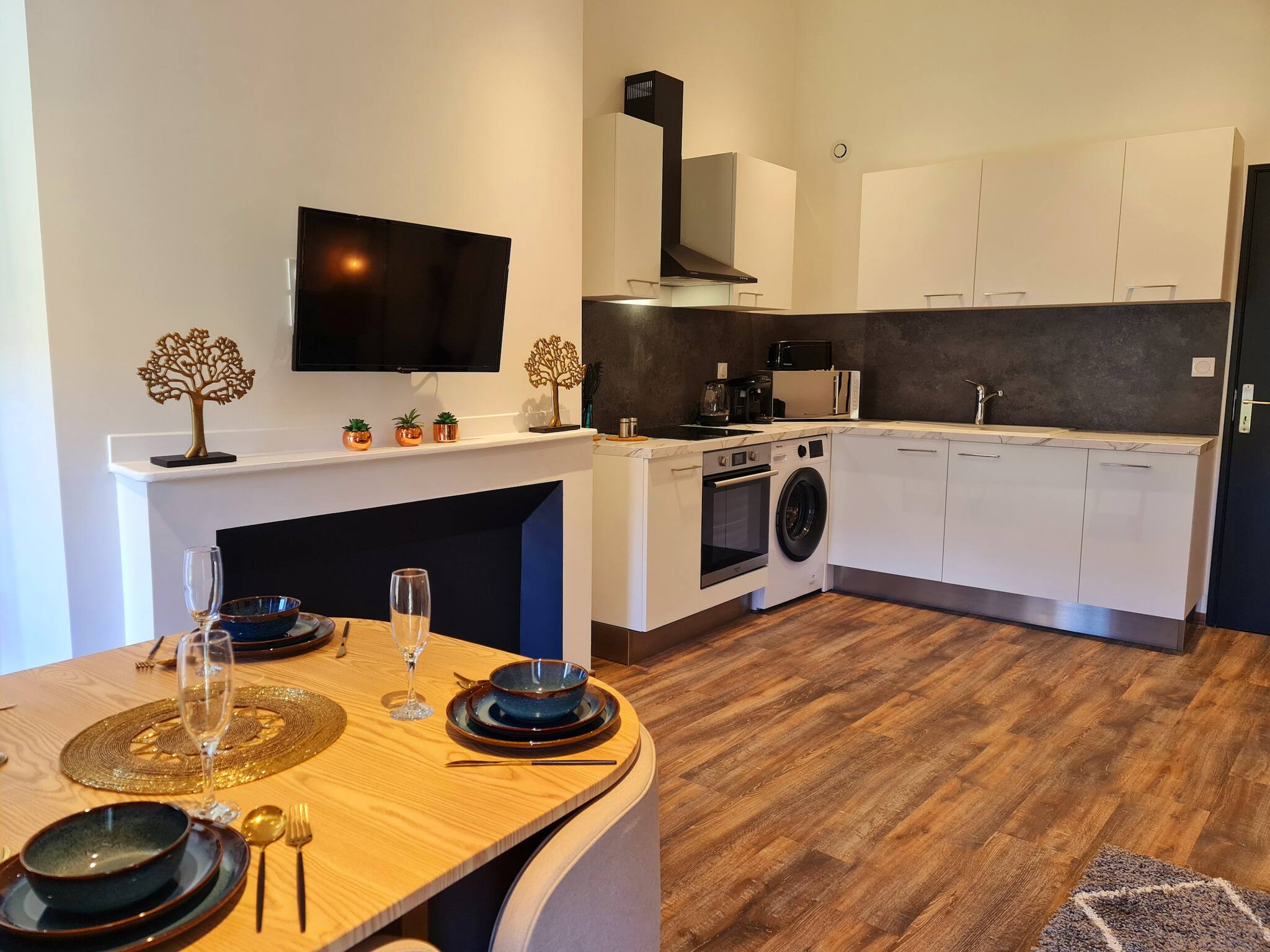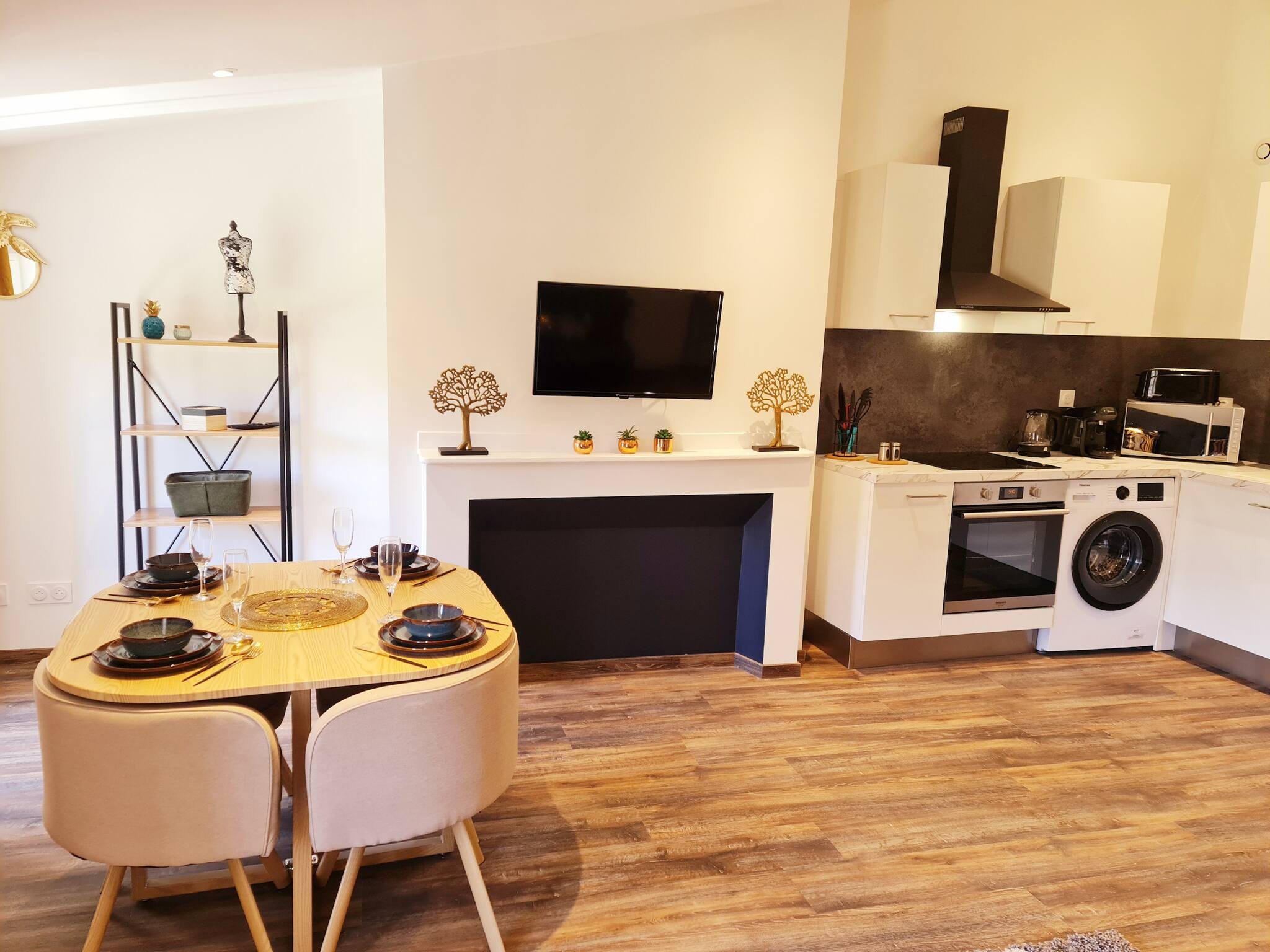 Le Panoramique de Millau – Élégant T2 avec vue dégagée au cœur de la villeBienvenue dans Le Panoramique de Millau, un appartement de charme de 42 m2 niché au 4ᵉ étage (sans ascenseur) d’un immeuble typique millavois, à deux pas du rond-point du Mandarous – véritable cœur battant de la ville. Situé avenue de la République, l’emplacement est tout simplement idéal : commerces, restaurants, marché, centre historique, rues piétonnes et transports en commun sont à portée de main. Tout commence ici.Un T2 lumineux, fonctionnel et bien pensé – parfait pour un séjour confortable et autonomeGrand salon convivial et lumineuxUn espace de vie accueillant et chaleureux, parfait pour se détendre ou travailler :Canapé confortable face à une TV muraleCoin repas agréable pour 2 à 4 personnesBureau pour télétravailler dans de bonnes conditionsCuisine ouverte entièrement équipée :Réfrigérateur, congélateur, four chaleur tournante, micro-ondes, plaques vitrocéramiques, lave-vaisselle, lave-linge, grille-pain, bouilloire, machine à café Tassimo, ustensiles, vaisselle et produits de première nécessitéUne chambre type suite hôtelièreLa chambre, isolée du salon pour plus d’intimité, propose :Un lit double (140x190)Une penderieUne salle d’eau attenante, moderne et élégante avec douche extra-plate (110x90) et lavabo suspenduUn WC suspendu séparé pour encore plus de confortServices & commodités supplémentairesWi-Fi haut débitAu rez-de-chaussée de l’immeuble :Restauration possible sur commande (petit-déjeuner en supplément), salon de thé sur place pour un moment gourmand et détenteEmplacement stratégiqueÀ 5 min du centre commercial de La CapelleÀ deux pas des commerces, bars, restaurants, marchés locauxEn plein centre ville et bordure du centre historique et touristiqueArrêts de bus et taxis à proximité immédiateStationnementStationnement public payant au pied de l'immeubleGrand Parking gratuit de la Grave (900 m 15 mn a pied) ou encore stationnement gratuit au par ce la Victoire (850m 12 mn a pied)Réservez dès maintenant ce superbe T2 traversant, au dernier étage, calme, baigné de lumière, pour vivre Millau pleinement, entre confort, autonomie et immersion locale.