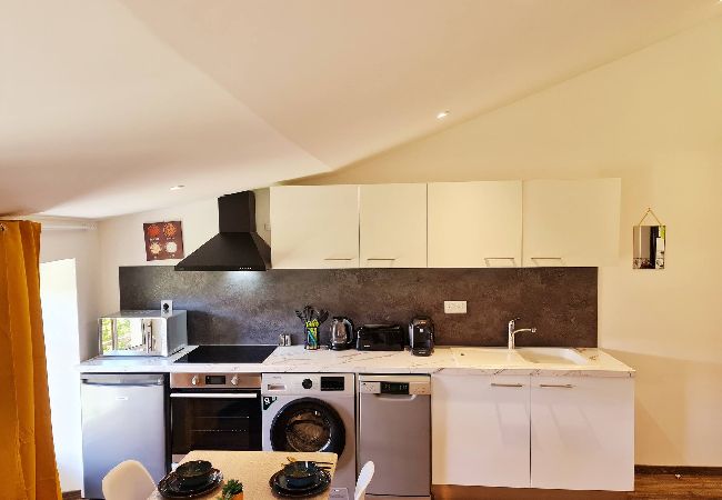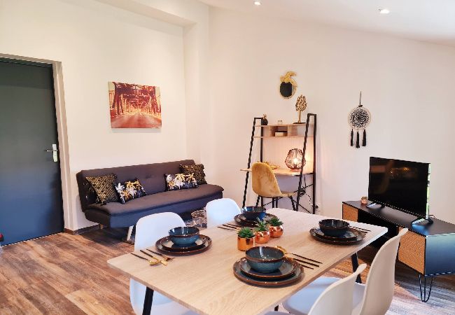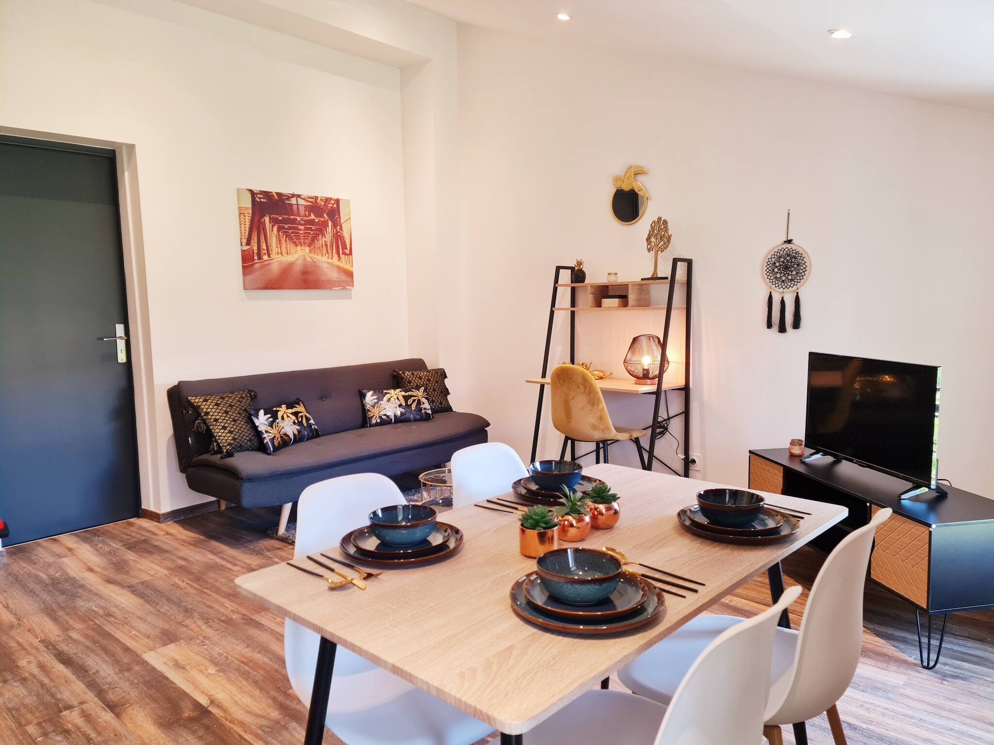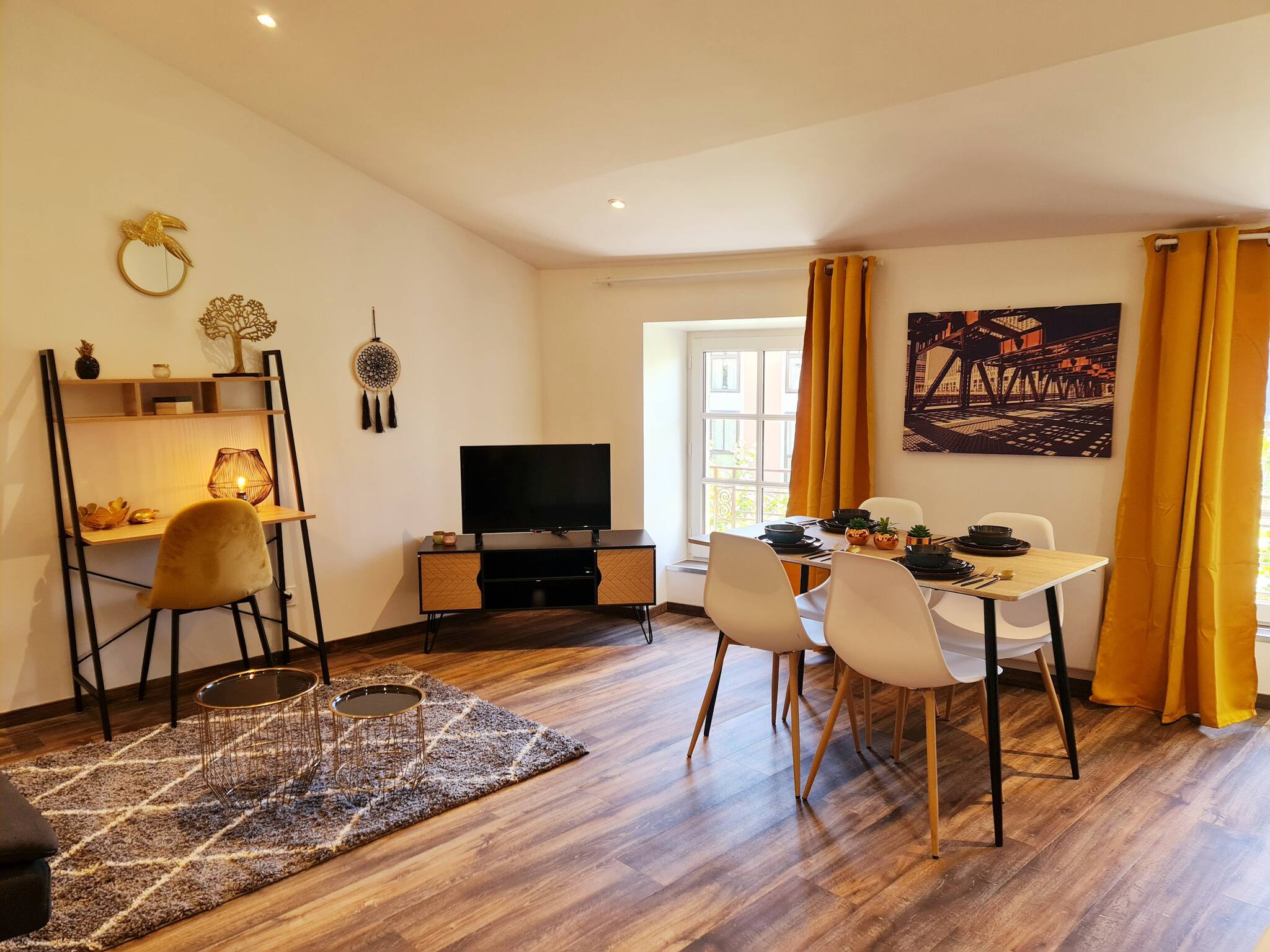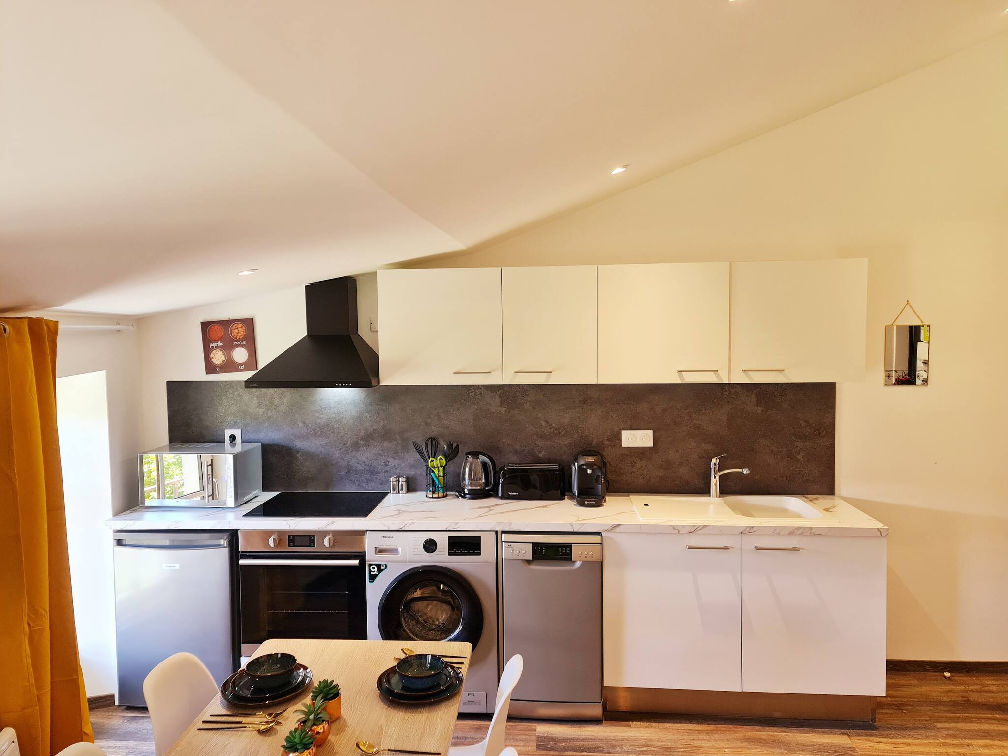 Les sommets de Millau – Cosy T2 avec vue dégagée au cœur de la villeBienvenue dans "Les sommets de Millau", un appartement cosy avec beaucoup de charme de 33m2, niché au 4ᵉ étage (sans ascenseur) d’un immeuble typique millavois, à deux pas du rond-point du Mandarous – véritable cœur battant de la ville. Situé avenue de la République, l’emplacement est tout simplement idéal : commerces, restaurants, marché, centre historique, rues piétonnes et transports en commun sont à portée de main. Tout commence ici.Un T2 lumineux, fonctionnel et bien pensé – parfait pour un séjour confortable et autonomeSalon convivial et lumineuxUn espace de vie accueillant et chaleureux, parfait pour se détendre ou travailler :Canapé confortable face à une TV 80 cm et un coin bureau.Coin repas agréable pour 2 à 4 personnesBureau pour télétravailler dans de bonnes conditionsCuisine ouverte entièrement équipée :Réfrigérateur, congélateur, four chaleur tournante, micro-ondes, plaques vitrocéramiques, lave-vaisselle, lave-linge, grille-pain, bouilloire, machine à café Tassimo, ustensiles, vaisselle et produits de première nécessitéUne chambre type suite hôtelièreLa chambre, isolée du salon pour plus d’intimité, propose :Un lit double (140x190)Une penderieUne salle d’eau attenante, moderne et élégante avec douche extra-plate (110x90) et lavabo suspenduUn WC suspendu séparé pour encore plus de confortServices & commodités supplémentairesWi-Fi haut débitAu rez-de-chaussée de l’immeuble :Restauration possible sur commande (petit-déjeuner en supplément), salon de thé sur place pour un moment gourmand et détenteEmplacement stratégiqueÀ 5 min du centre commercial de La CapelleÀ deux pas des commerces, bars, restaurants, marchés locauxEn plein centre ville et bordure du centre historique et touristiqueArrêts de bus et taxis à proximité immédiateStationnementStationnement public payant au pied de l'immeubleGrand Parking gratuit de la Grave (900 m 15 mn a pied) ou encore stationnement gratuit au par ce la Victoire (850m 12 mn a pied)Réservez dès maintenant ce superbe T2, au dernier étage, calme, baigné de lumière, pour vivre Millau pleinement, entre confort, autonomie et immersion locale.