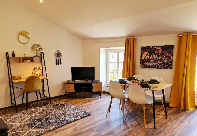 Duplex chaleureux et cosy au cœur de Millau – Charme & tranquillitéBienvenue dans ce duplex T2 bis de 35 m² environ, confortable, lumineux et idéalement situé au 2ᵉ étage (sans ascenseur) d’un immeuble ancien et atypique du centre historique de Millau. Ce logement plein de charme, à la configuration inversée, offre un cadre paisible, pratique et accueillant pour vos séjours professionnels ou touristiques.Le bâtiment, qui abrite 5 logements totalement indépendants, garantit à la fois intimité et calme, à deux pas de l’effervescence du centre-ville.Un espace cosy, sur deux niveaux :Le duplex se compose de :Une cuisine séparée, entièrement équipée, avec :Réfrigérateur, congélateur, lave vaisselle, lave lingeFour, micro-ondes, plaques de cuissonGrille-pain, bouilloire, machine à café TassimoUstensiles, vaisselle, produits de première nécessitéUne salle de bain privative, avec douche, lavabo et WC suspenduUn coin salon lumineux, en partie basse du duplex, avec canapé et TV 80 cm, ouvert sur le perron type petit balcon, permettant d’aérer ou de prendre l’airÀ l’étage :Une chambre mansardée au calme, avec lit double, coin bureau, espace rangement et espace lecture cocooning, aménagé sous pente, idéal pour se détendre ou télétravailler dans une ambiance chaleureuseSituation idéale :L’appartement est situé au milieu du boulevard Sadi Carnot, à :1 minute du centre commercial de la CapelleAu pied du grand marché du vendredi, des commerces, restaurants, cafés – notamment le restaurant des HallesEn hyper centre historique, à proximité immédiate des ruelles typiques de Millau et de toutes les commoditésBon à savoir :Petit perron commun, façon balcon donnant dans la cour intérieur de l'immeublePas de climatisation : malgré un rafraîchisseur d’air mis à disposition, l’appartement peut rester relativement chaud en étéStationnement public payant au pied de l’immeubleInterdiction de stationner le jeudi soir devant l’immeuble, en raison de l’installation du marché du vendredi — pensez à bien vérifier la signalisationAu rez-de-chaussée, le salon de thé "Big Ben" vous accueille pour un petit-déjeuner ou une pause gourmande (en supplément, réservation directement auprès du restaurant)Réservez dès maintenant ce duplex calme, fonctionnel et plein de charme pour une belle parenthèse au cœur de Millau !