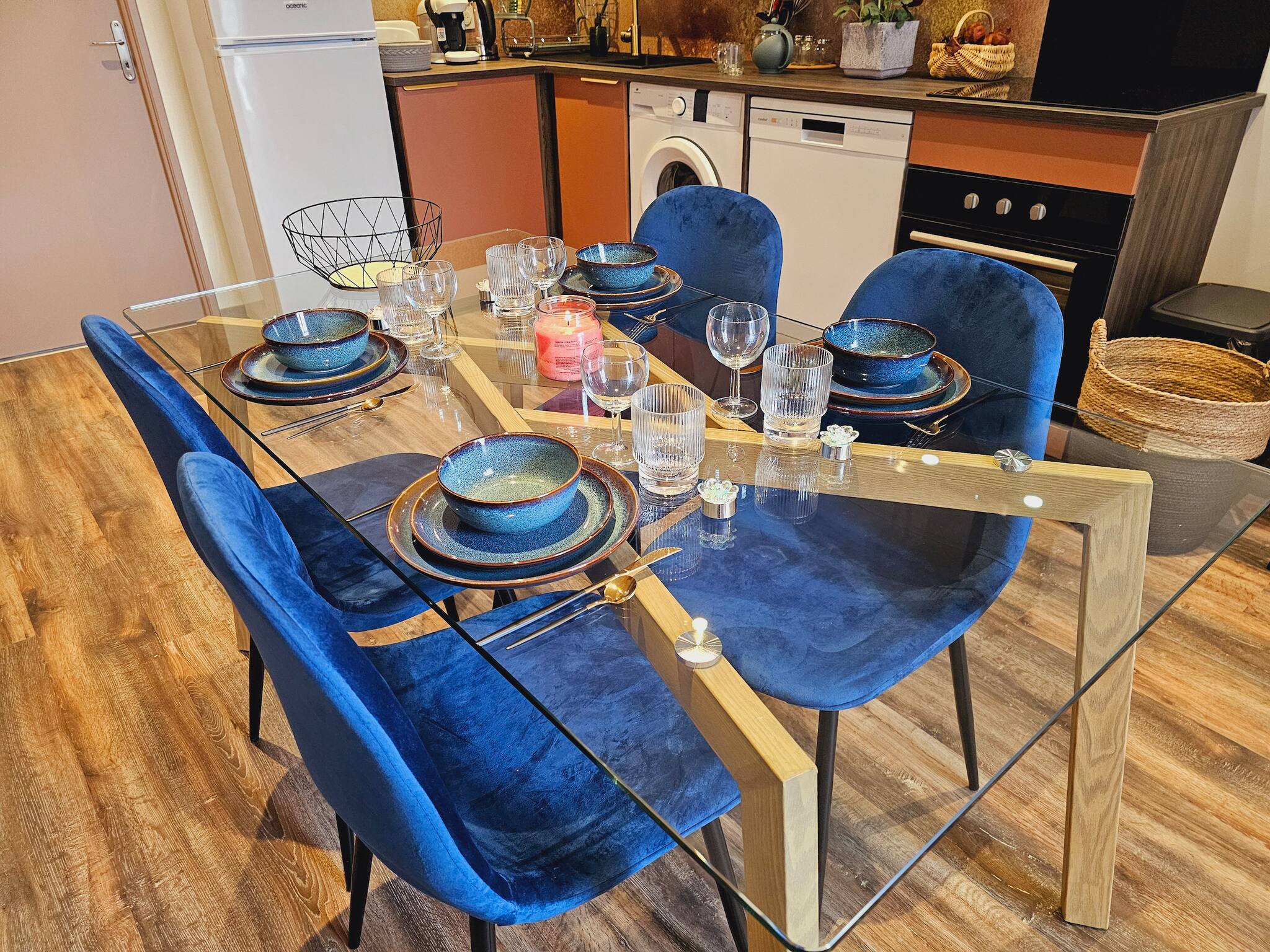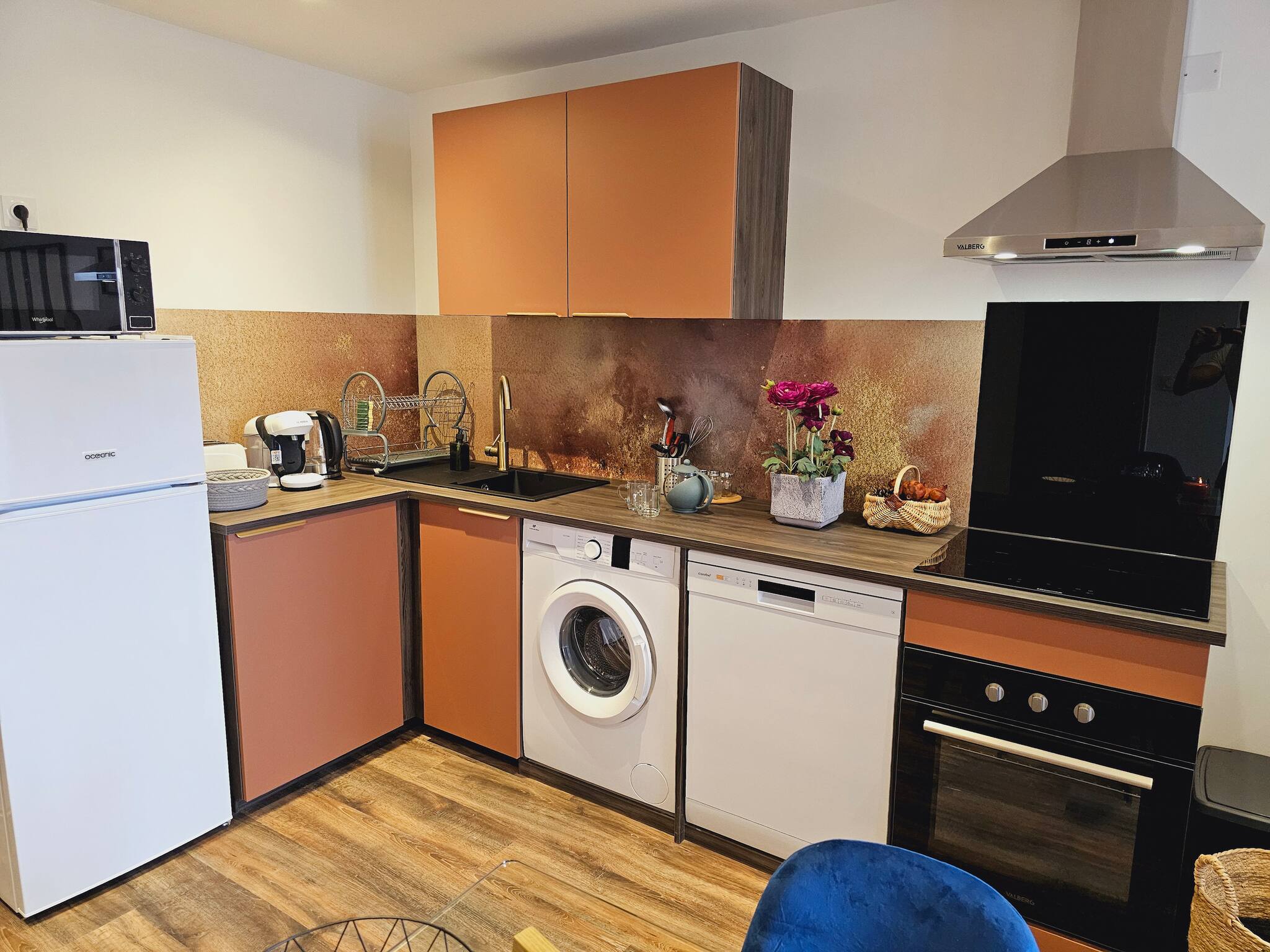 La cuisine est entièrement équipée avec des appareils modernes : réfrigérateur, four, micro-ondes, plaque de cuisson, et lave-vaisselle. Vous y trouverez également tous les ustensiles nécessaires pour préparer vos repas comme à la maison. Que vous soyez un chef en herbe ou que vous aimiez simplement cuisiner, cette cuisine répondra à tous vos besoins.