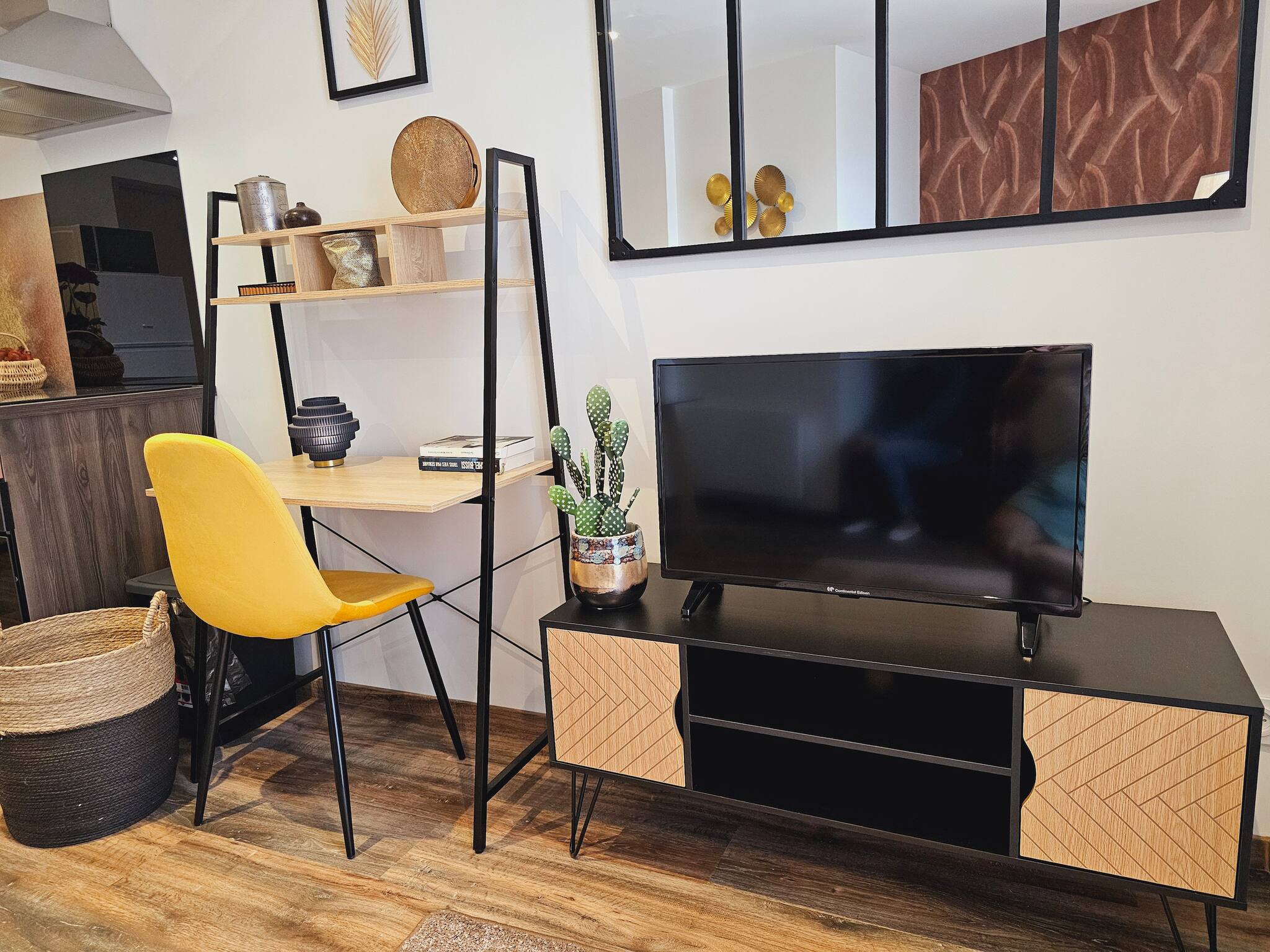 Bienvenue dans notre appartement des Tendres, parfait pour un séjour confortable et pratique. Situé dans un quartier paisible, ce logement de deux chambres offre tout le nécessaire pour vous sentir comme chez vous, que ce soit pour un court séjour ou une longue durée. Cet appartement de 31m² se trouve au 3ᵉ étage d’un immeuble de 3 étages sans ascenseur.Atout fort du logement : ses poutres apparentes, qui lui confèrent un vrai cachet et une ambiance chaleureuse, entre esprit chalet et cocon intimiste.Le logement est équipé de la climatisation, disponible durant la période estivale, du 1er juin au 15 septembre, pour un confort optimal.Chambre 1 : Confort et SérénitéLa première chambre est équipée d’un lit double de 140x190. Avec ses draps doux et son matelas confortable, cette chambre est idéale pour des nuits reposantes. La décoration est sobre et élégante, avec des tons neutres qui créent une atmosphère apaisante. Une étagère est à votre disposition pour ranger vos affaires en toute commodité.Chambre 2 : Pratique et AccueillanteLa deuxième chambre dispose d’un lit simple de 90x190, parfait pour un enfant ou un invité. Cette chambre est également décorée avec soin, offrant un espace de repos agréable.Salon Convivial : Espace de DétenteLe salon est le cœur du logement, où vous pouvez vous détendre après une journée bien remplie. Aménagé avec un canapé confortable et une télévision à écran plat, il est parfait pour des soirées cinéma en famille ou entre amis. La décoration moderne et chaleureuse invite à la relaxation.La pièce de vie bénéficie d’une belle lumière naturelle et d’une vue dégagée sans vis-à-vis direct.Coin Bureau : Pour le Travail et les LoisirsUn coin bureau a été aménagé dans la deuxième chambre, offrant un espace tranquille pour travailler ou étudier. Avec une chaise ergonomique et une connexion Wi-Fi par fibre, cet espace est parfait pour les professionnels en déplacement ou les étudiants.Cuisine Équipée : Pour les GourmetsLa cuisine est entièrement équipée avec des appareils modernes : réfrigérateur, four, micro-ondes, plaque de cuisson et lave-vaisselle. Vous y trouverez également tous les ustensiles nécessaires pour préparer vos repas comme à la maison. Que vous soyez un chef en herbe ou que vous aimiez simplement cuisiner, cette cuisine répondra à tous vos besoins.Espace Repas : Pour des Moments ConviviauxL’espace repas est adjacent à la cuisine, avec une table pouvant accueillir jusqu’à quatre personnes. C’est l’endroit idéal pour partager des repas en famille ou entre amis. La lumière naturelle inonde cet espace, rendant chaque repas encore plus agréable.Salle de Bain Moderne : Confort et PraticitéLa salle de bain est équipée d’une douche de 80x80, d’un lavabo moderne et de toilettes suspendues. Des serviettes douces et des articles de toilette de base sont fournis pour votre confort. La propreté et le design contemporain de cette salle de bain ajoutent une touche appréciable à votre séjour.Ce logement de deux chambres est conçu pour offrir confort et commodité.Sa situation centrale vous place à quelques pas des commerces, restaurants, cafés, boulangeries et services essentiels, pour vivre pleinement votre séjour sans contrainte.Que vous voyagiez en famille, entre amis ou pour des raisons professionnelles, vous y trouverez tout ce dont vous avez besoin pour un séjour agréable et mémorable.Réservez dès maintenant et découvrez par vous-même le confort, le charme et la praticité de ce logement exceptionnel.