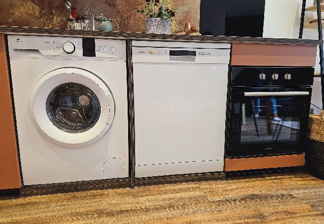 La cuisine est entièrement équipée avec des appareils modernes : réfrigérateur, four, micro-ondes, plaque de cuisson et lave-vaisselle. Vous y trouverez également tous les ustensiles nécessaires pour préparer vos repas comme à la maison. Que vous soyez un chef en herbe ou que vous aimiez simplement cuisiner, cette cuisine répondra à tous vos besoins.