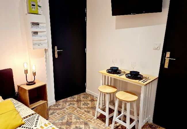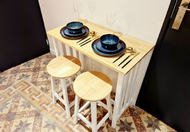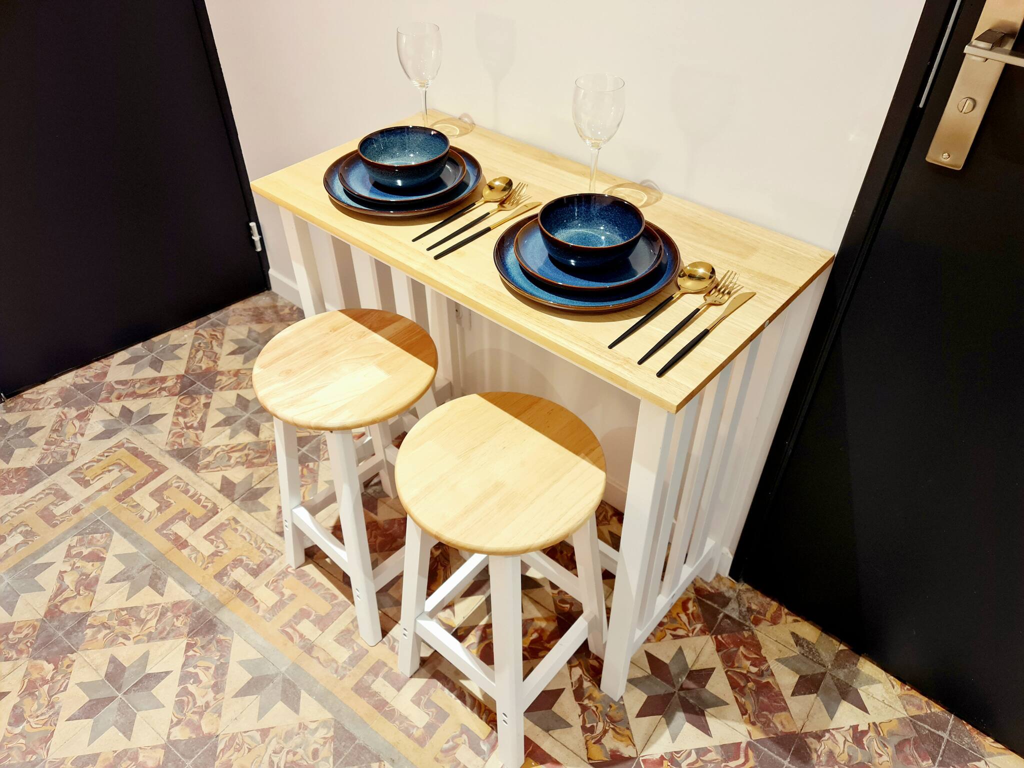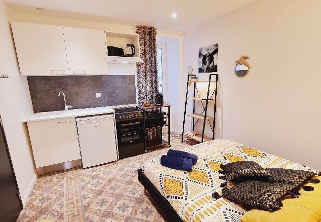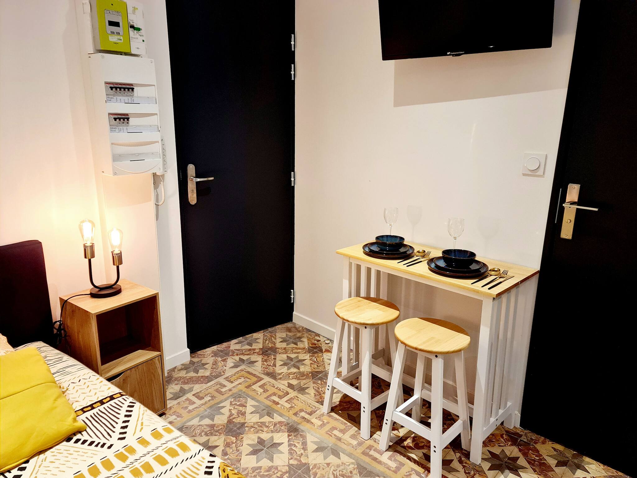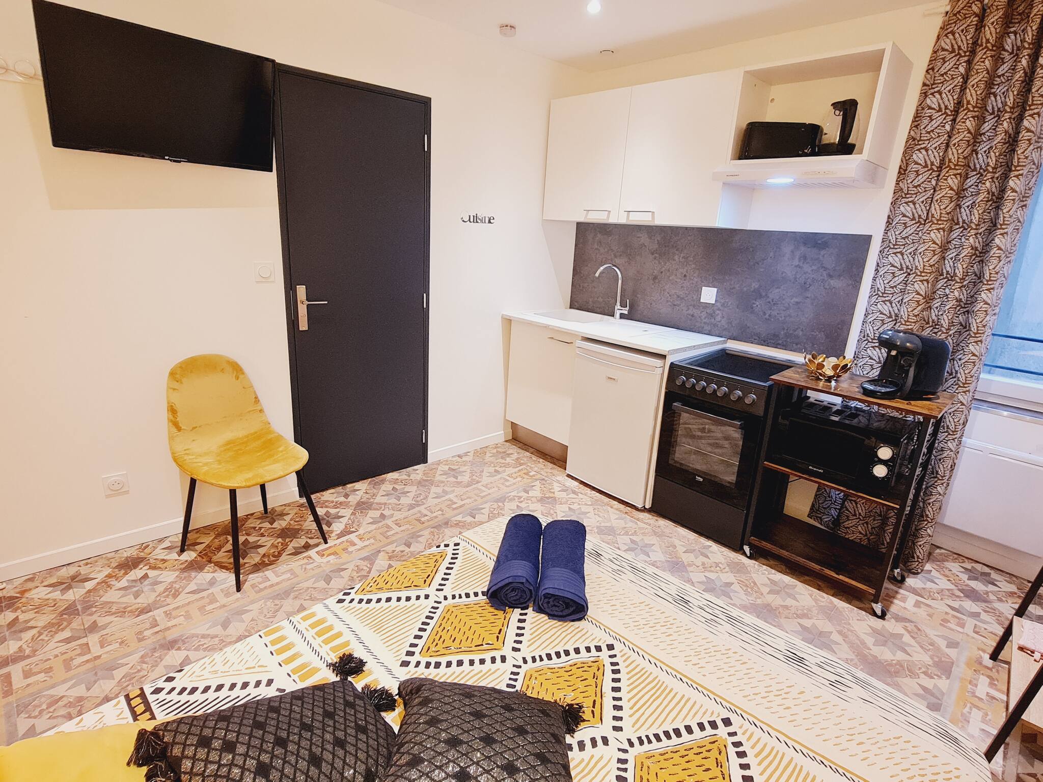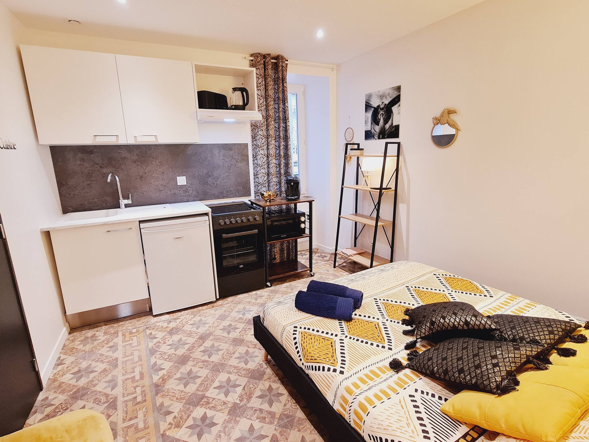 Les Demoiselles de Millau – Studio chic et ultra-fonctionnel au cœur de MillauBienvenue dans notre studio "Les Demoiselles de Millau", un studio de 17 m² à la fois élégant et parfaitement optimisé, situé au 2ᵉ étage sans ascenseur d’un immeuble typique du centre-ville. À deux pas du rond-point du Mandarous, vous êtes ici au cœur même de Millau, sur l’avenue de la République : commerces, restaurants, marché, centre historique et transports en commun sont à portée immédiate.Un studio compact, mais complet – idéal pour un séjour solo ou en duo, entre praticité, confort et raffinementEspace de vie confortable et bien agencéLit double (140x190)Coin repas pour 2 personnesTV murale suspendueRangements intelligents et disposition fluideCuisine haut de gamme – bien plus qu’une kitchenetteUne vraie cuisine, pensée comme dans un grand appartement :Placards de rangementPlaques de cuisson/four electriqueRéfrigérateur / freezerGrille-pain, bouilloire, machine à café TassimoVaisselle, ustensiles et produits de première nécessitéSalle d’eau moderne et WC séparéCabine de douche extra-plate Lavabo suspenduWC suspenduServices & commoditésWi-Fi haut débitRestauration sur commande (petit-déjeuner en supplément) disponible au rez-de-chausséeSalon de thé sur place pour un moment détenteEmplacement exceptionnelÀ 5 min à pied du centre commercial de La CapelleÀ deux pas des commerces, bars, restaurants et marchésAux portes du centre historiqueAccès immédiat aux arrêts de bus et de taxisStationnementStationnement public payant au pied de l'immeubleParking gratuit de la Grave (900 m – 15 min à pied)Parking gratuit du parc de la Victoire (850 m – 12 min à pied)Réservez dès maintenant Les Demoiselles de Millau, un studio haut de gamme et malin, au style soigné, parfait pour découvrir la ville en toute autonomie, sans compromis sur le confort.